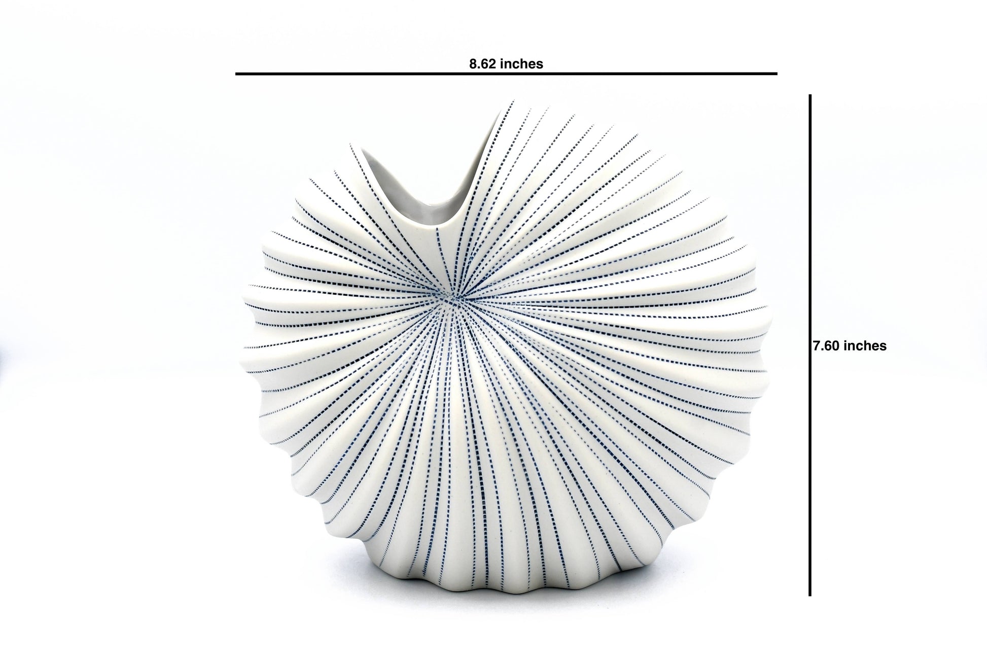 Add an impressive focal point to tabletops, shelves, and windowsills with this mesmerizing sea shell vase. Carefully handcrafted from fine porcelain ceramic, this ocean-themed ornament is inspired by giant cockle shells that can be found on sandy shores across the globe. Its abstract form and watertight qualities both make it ideal for displaying flowers in a unique way—elevating your interior décor with artistic flair while also adding a touch of nature.