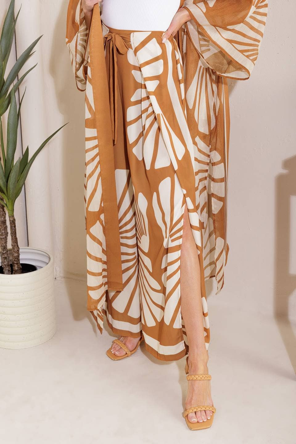 These printed woven kimono pants combine effortless elegance with comfort, featuring a lightweight, flowing fabric adorned with vibrant prints inspired by traditional kimono patterns. Designed with a relaxed fit and wide legs, these pants offer both style and ease, making them perfect for lounging at home or dressing up for a casual outing. The woven texture adds a subtle richness to the fabric, while the eye-catching print brings a touch of artistic flair to your wardrobe.