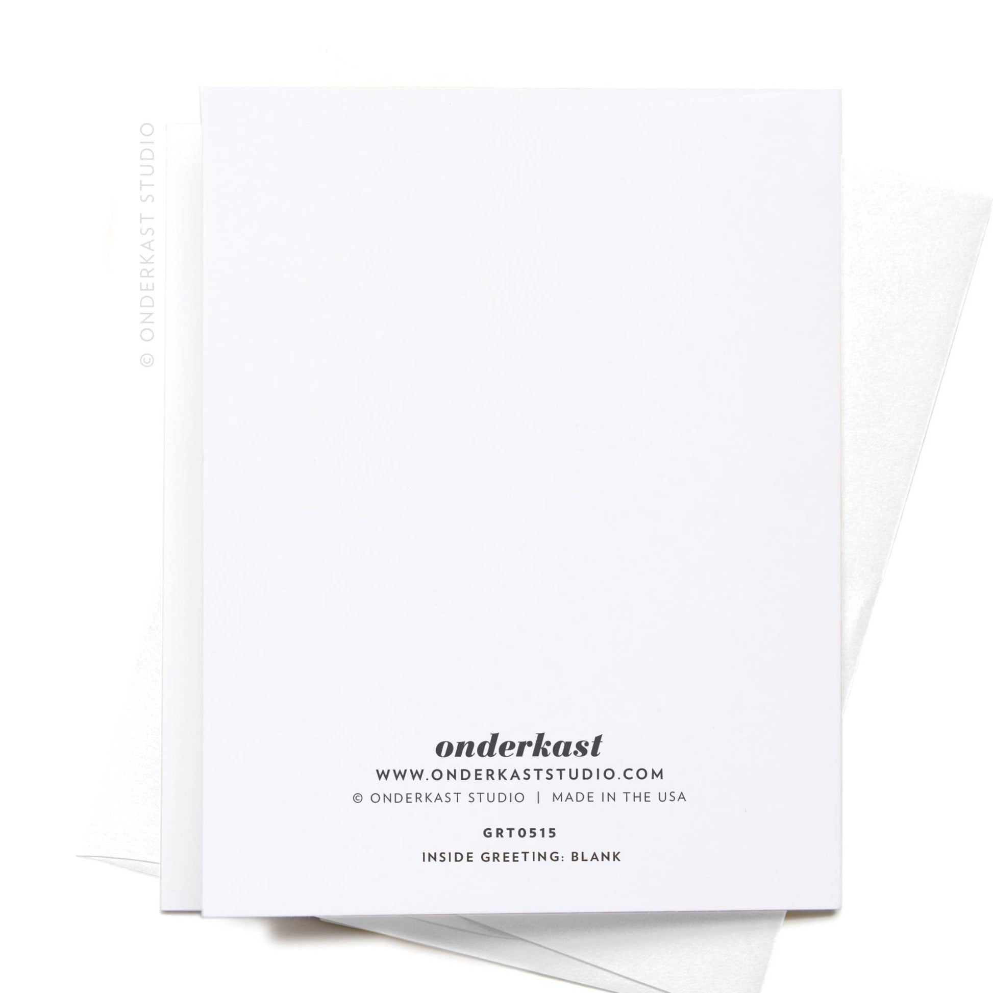 Size: A2 (4.25” x 5.5”) folded greeting card. Material: Printed on smooth white card stock paper that is thick and durable providing a premium feel to the card. Each card includes a matching white square flap envelope.