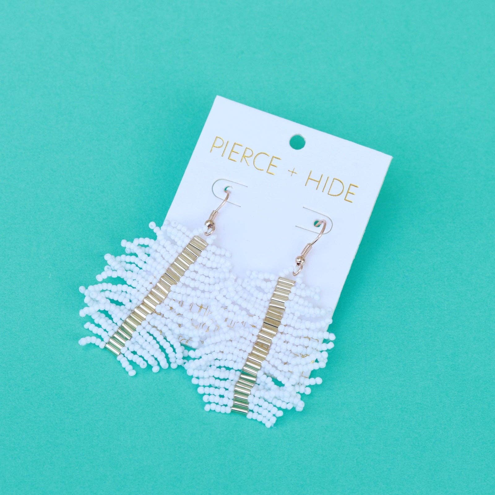 Add a touch of boho-chic elegance to any outfit with these stunning handcrafted white beaded leaf earrings. Featuring delicate white beads intricately woven into a beautiful leaf design, accented with a subtle gold-tone center detail, these earrings are perfect for adding a unique and stylish flair to your look. Lightweight and comfortable to wear, they effortlessly complement both casual and dressy ensembles.