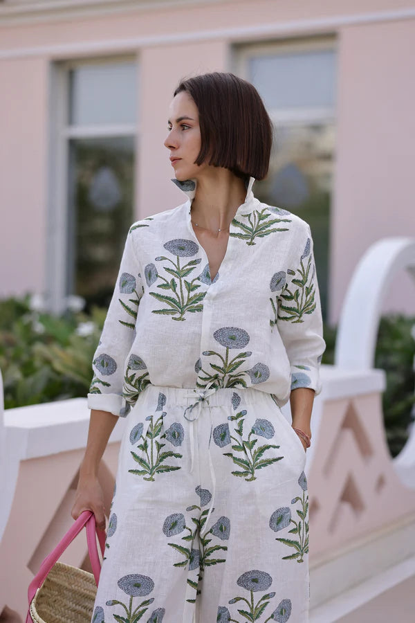 From beachside brunches to tropical soirees, our Montecito Popover is bound to be a favorite. Hand printed on lightweight European Linen, the Montecito Popover features a flattering V-neck, side seam slits and mother of pearl buttons ast wrists. Pair it with its matching pant for a casual and comfortable look without compromising style.