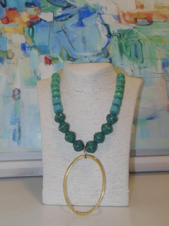 Channel coastal elegance with the Oceans Embrace Necklace by LUSH, a bold fusion of earthy texture and modern design. Hand-strung with rich teal and turquoise-toned beads, this piece evokes the serene beauty of ocean waves and sunlit sea glass. The oversized hammered gold-tone oval pendant adds a striking focal point, creating a beautiful balance between organic charm and contemporary flair.
