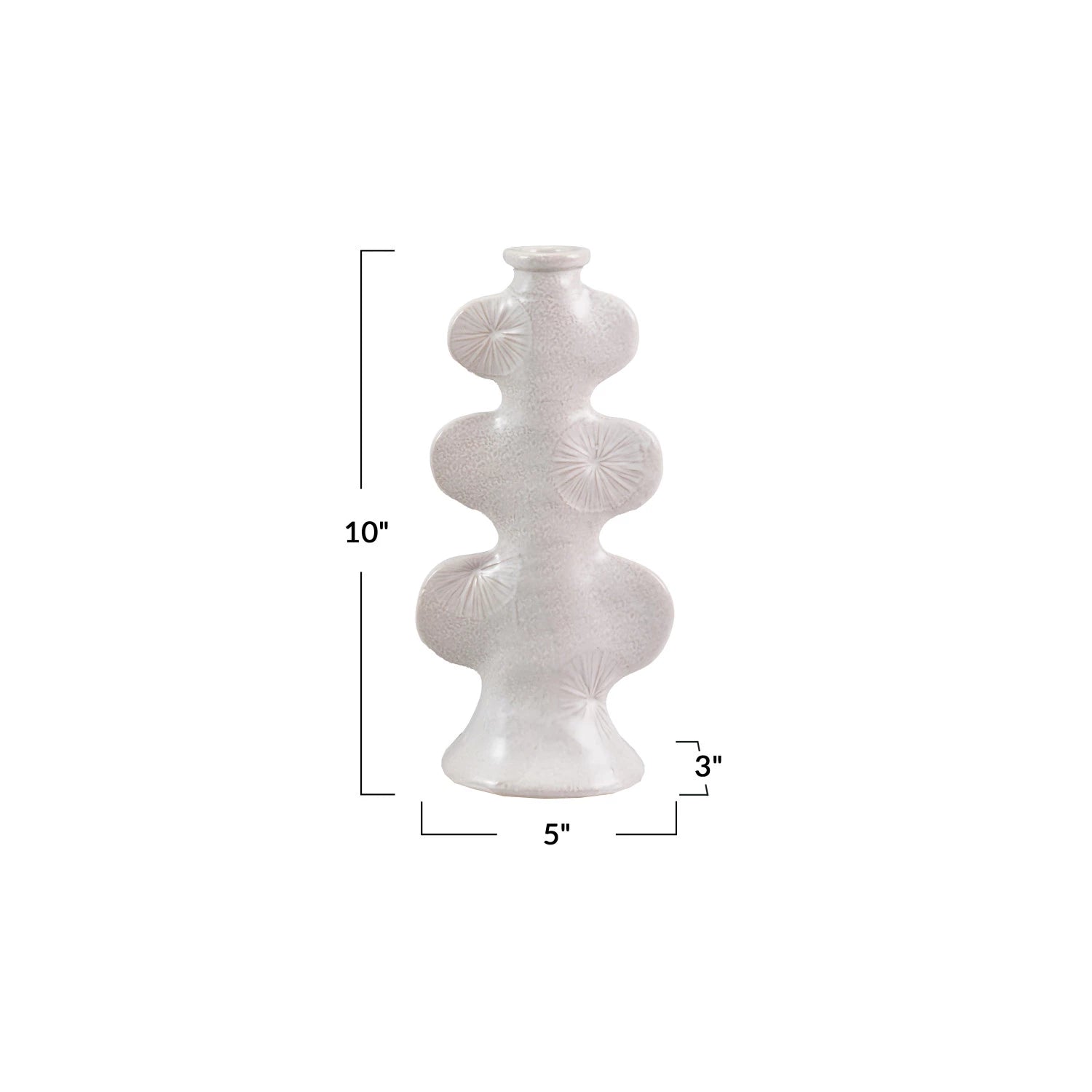 Stoneware Sculptural Taper Holder w/ Embossed Design