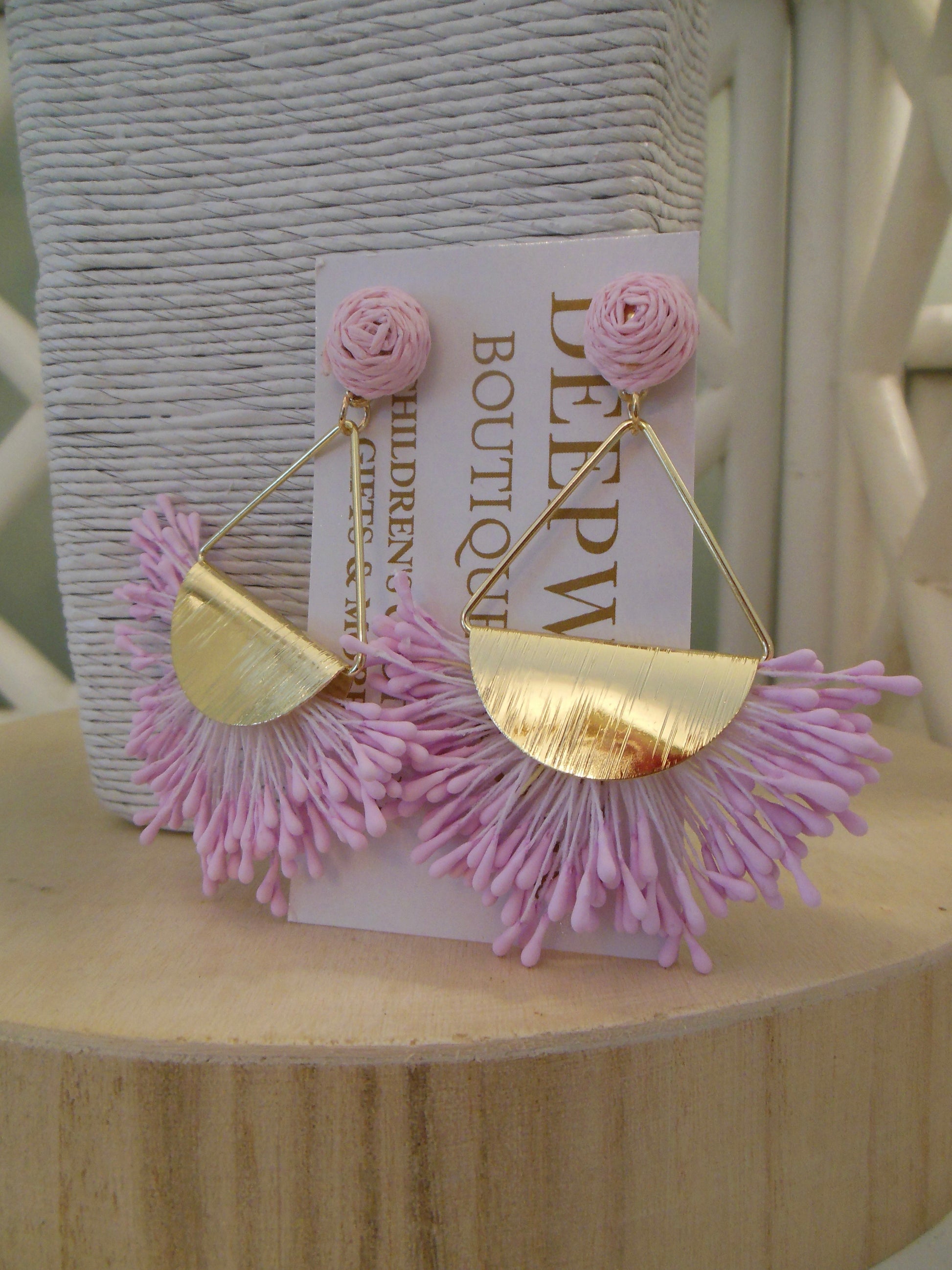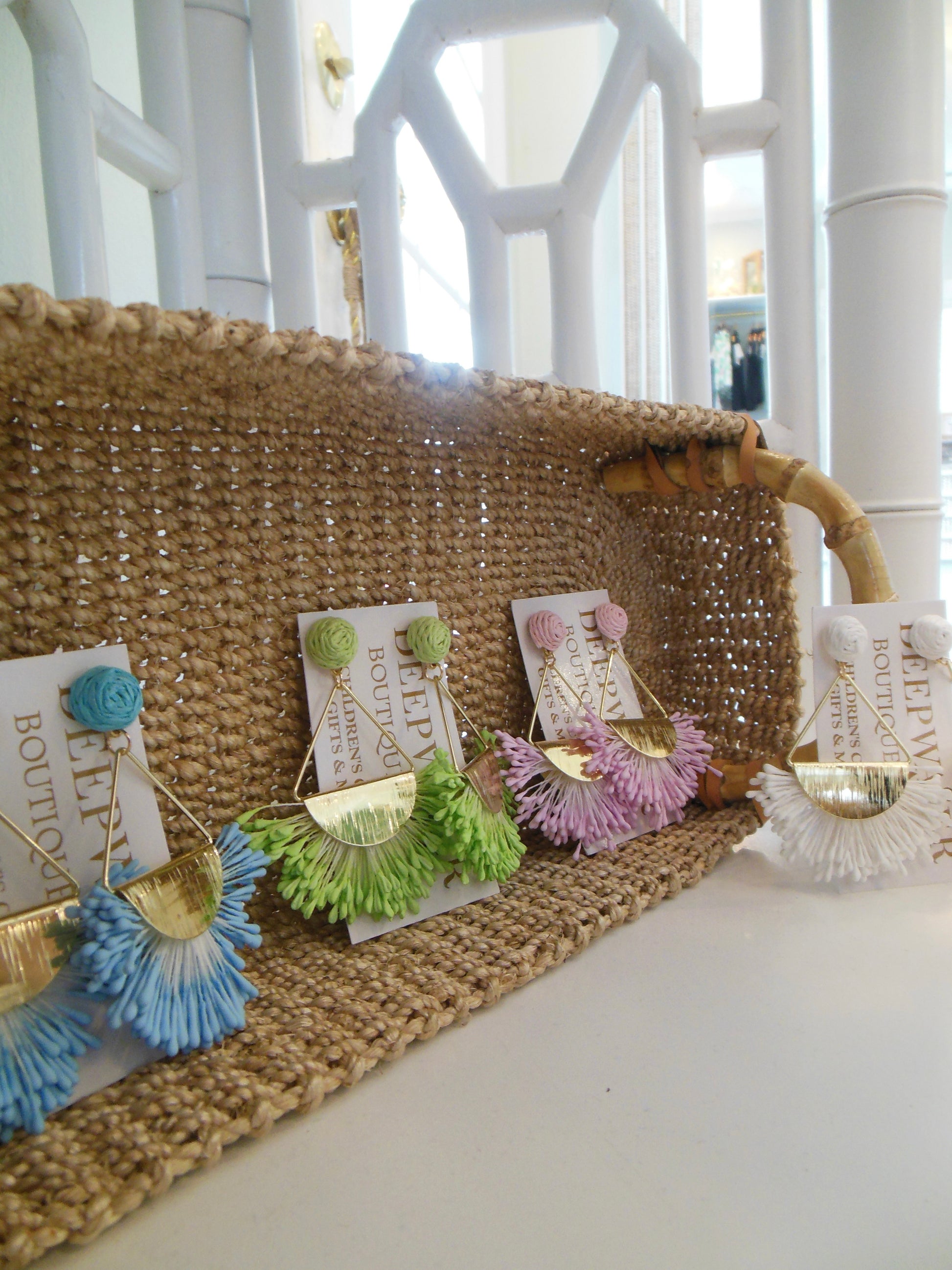 Add a pop of color and a touch of boho-chic flair to any outfit with our vibrant tassel statement earrings. Featuring a unique geometric design with a half-moon gold accent and delicate, colorful tassels in shades of blue, pink, green, yellow, and cream, these earrings are perfect for making a bold fashion statement. Lightweight and eye-catching, they're ideal for both casual outings and special occasions. Elevate your accessory game and express your unique style with these must-have earrings!